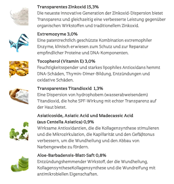 - Enthält vollphysikalische, transparente Sonnenschutzwirkstoffe